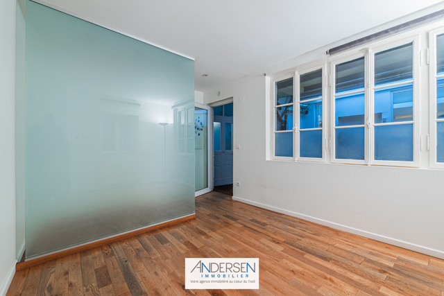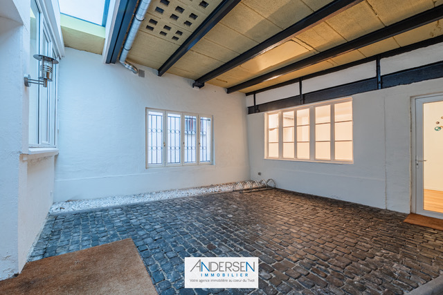 Une petite cour en partie privative assure la liaison avec un accueil divisible en 2 cellules aménagées ( bureaux, salle de soin)