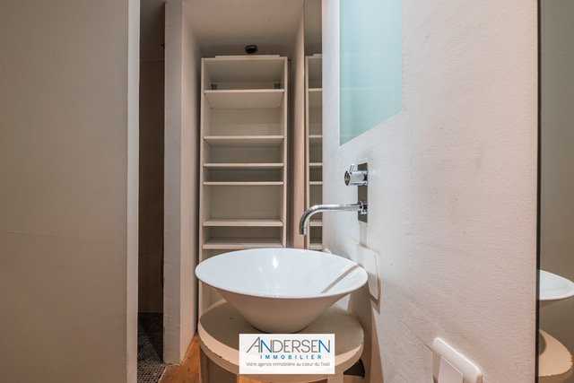 La partie privée bénéficie d’un lavabo, d’une douche et d’un WC indépendant.
