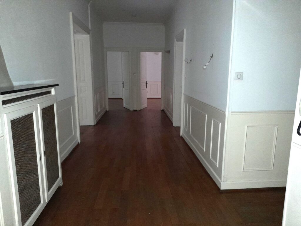 Avenue de la Paix, dans un magnifique immeuble historique de 1890, découvrez ce somptueux appartement de 5 pièces, offrant une superficie généreuse de 178 m². Situé à proximité du Parc des Contades, cet espace de vie allie charme de l’ancien et confort moderne. Ce bien se compose d’une entrée spacieuse avec espace vestiaire, un vaste salon/séjour de 55 m², une cuisine moderne entièrement meublée et équipée, comprenant un combiné frigidaire/congélateur, une plaque à induction 4 feux et un lave-vaisselle, avec accès direct à un balcon, 3 chambres confortables, dont 2 sont dotées de grands placards intégrés, offrant de nombreuses possibilités de rangement, une salle de bains équipée d’une baignoire, d’un lavabo et d’un WC, ainsi qu’une salle d’eau avec douche, lavabo et WC.