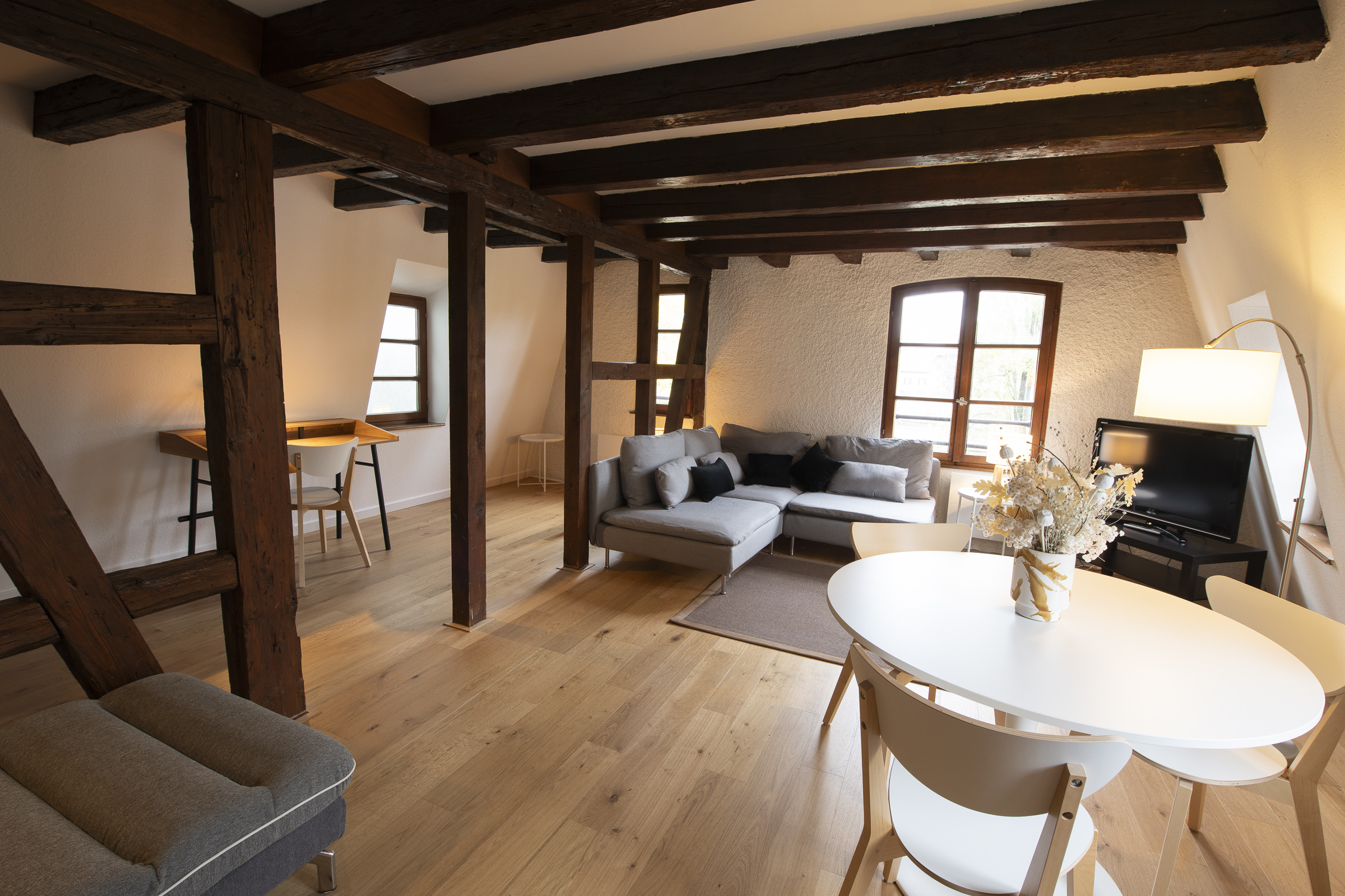 Niché au cœur de Petite France, dans un magnifique immeuble alsacien à colombages, ce superbe 2P duplex entièrement meublé et équipé vous séduira par son ambiance chaleureuse et son emplacement privilégié. Situé au 3ème et dernier étage, il offre une vue imprenable sur l’Ile, les célèbres Ponts Couverts et la majestueuse Cathédrale.