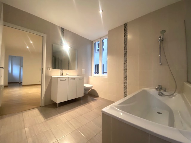Cet appartement dispose d’une entrée, d’un salon / séjour offrant un accès sur un balcon, d’ une cuisine semi équipée intégrant (plaques vitrocéramiques BOSCH, four BOSCH, hotte ELECTROLUX), 2 chambres dont une avec dressing, une salle d’eau avec WC et enfin une salle de bain avec douche baignoire et WC.